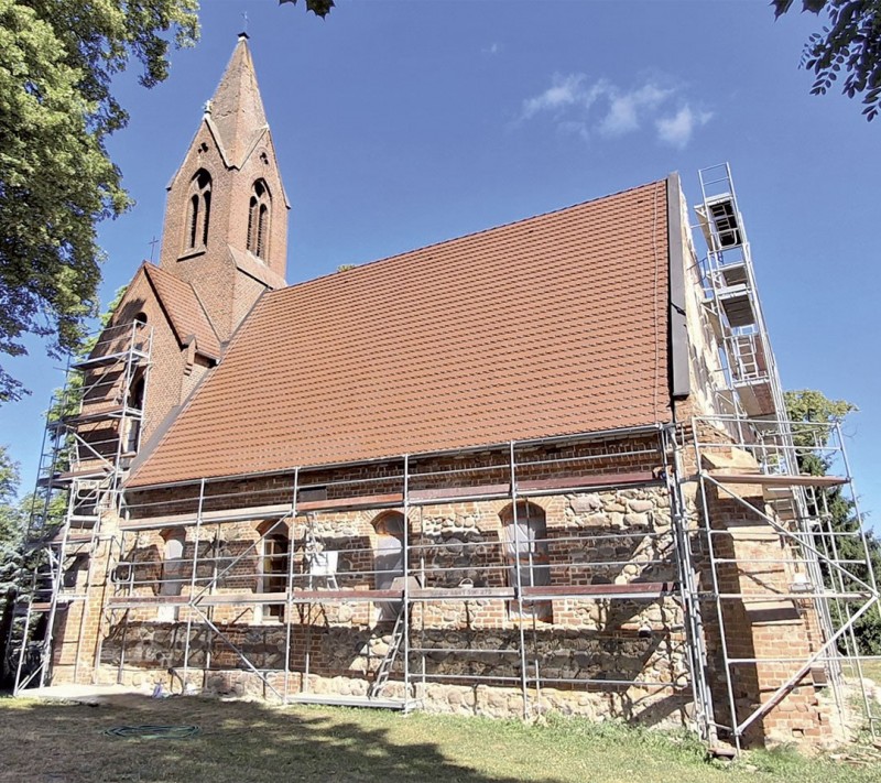 Obecnie trwają prace renowacyjne elewacji kamienno-ceglanych, które są kontynuacją konserwacji sprzed dwóch lat, kiedy to remontowano wieżę. W obu etapach aktywny udział brała także firma Hufgard-Optolith, która przygotowała pełną technologią materiałów renowacyjnych w oparciu o system Optosan. Zdecydowano się na zaprawy wapienne z trassem reńskim. Obecnie to najlepszy rodzaj materiału wiążącego jako jedyny posiadający szczegółową dokumentację badawczą oraz akceptację krajowych ośrodków konserwatorskich takich jak UMK w Toruniu. Wykorzystano fabryczne zaprawy do murowania Optosan TrassMortel, reprofilacji ubytków cegieł Optosan NSR i specjalnie opracowane w kolorze i uziarnieniu spoiny Optosan TrassFuge. Prace objęły także renowacje tynków w blendach, gdzie wykorzystano fabryczny tynk wapienno-trassowy Optosan RenoPutz. Całość prac uzupełniły środki do dezynfekcji oraz końcowej hydrofobizacji Optosan HydroSilan. Remont wykonuje firma konserwatorska Ryzalit z Torunia.
