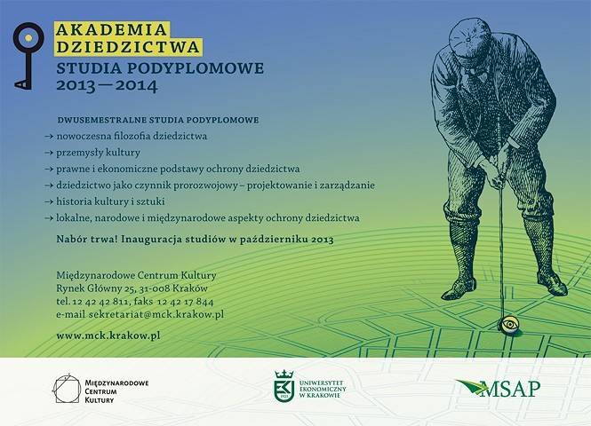 Trwa nabór na studia podyplomowe - Akademia Dziedzictwa 2013-2014. Inauguracja studiów w październiku 2013 roku.
