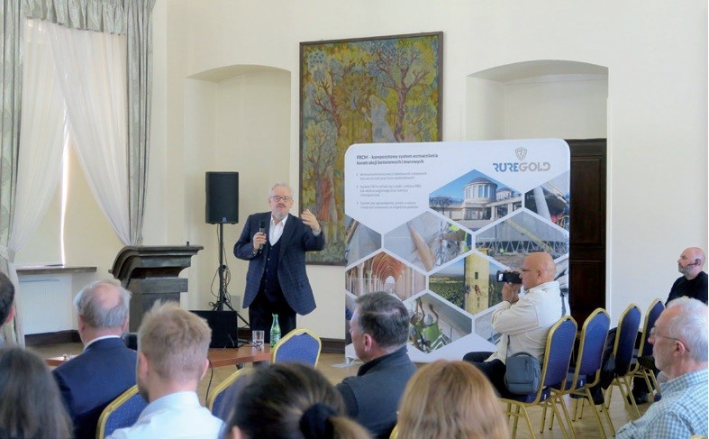 W dniach 9–11 października 2023 roku w kompleksie zamku w Krasiczynie w woj. podkarpackim miała miejsce Międzynarodowa Konferencja „FRCM – innowacyjny system wzmacniania i renowacji konstrukcji zabytkowych obiektów architektury marki Ruregold”, której organizatorem była firma Visbud-Projekt Sp. z o.o. Celem konferencji było przybliżenie środowisku konserwatorskiemu innowacyjnego systemu kompozytowych wzmocnień FRCM służącego do stabilizacji i wzmacniania elementów konstrukcji murowych i żelbetowych. System FRCM sygnowany włoską marką Ruregold to połączenie siatki z włókien o wysokiej wytrzymałości mechanicznej i matrycy mineralnej. Dzięki swojej lekkości, znikomej inwazyjności na konstrukcję, paroprzepuszczalności oraz szybkości montażu znajduje szczególne zastosowanie w renowacji zabytków architektury. Umożliwia m.in. zespalanie zagrożonych destrukcją sklepień ceglanych, zapobieganie odkształceniom łuków i pierścieni murowanych, wzmacnianie elementów ściskanych oraz zginanych, jak np. wykonane z kamienia lub cegły filary i kolumny. Atutem systemu jest również to, że nie wymaga dodatkowych zabezpieczeń przeciwpożarowych oraz może być stosowany na wilgotnych podłożach.