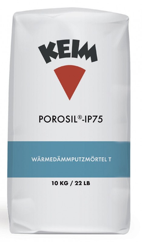KEIM Porosil-IP75 to mineralny tynk ciepłochronny, który może być stosowany na elewacjach oraz we wnętrzach pomieszczeń. Jest doskonałym sposobem poprawy efektywno- ści energetycznej budowli, w których nie jest dopuszczalne zastosowanie tradycyjnego systemu ociepleń, czyli najczęściej w obiektach historycznych. KEIM Porosil-IP75 jest produktem całkowicie niepalnym (klasa reakcji na ogień A1) i harmonijnie wpasowuje się w istniejącą architekturę budynku. Lekkie kruszywo perlitowe zapewnia bardzo dobre właściwości izolacyjne na poziomie l10,dry, mat dla P = 90% £ 0,075 W/(mK). Tynk może być nakładany w warstwach 2-centymetrowych, o całkowitej maksymalnej grubości do 10 cm. Ze względu na efektywność energetyczną zalecana jest całkowita grubość tynku min. 4 cm. Produkt nakładany jest natryskiem, a po wyrównaniu – ze względu na fakt, że jest to tynk lekki – zalecane jest pokrycie go odpowiednią zaprawą mineralną KEIM z siatką zbrojeniową. Jako warstwę wierzchnią można stosować dowolne tynki i farby KEIM, dobrane odpowiednio do oczekiwań struktury i koloru oraz obszaru zastosowania (elewacja/wnętrze).