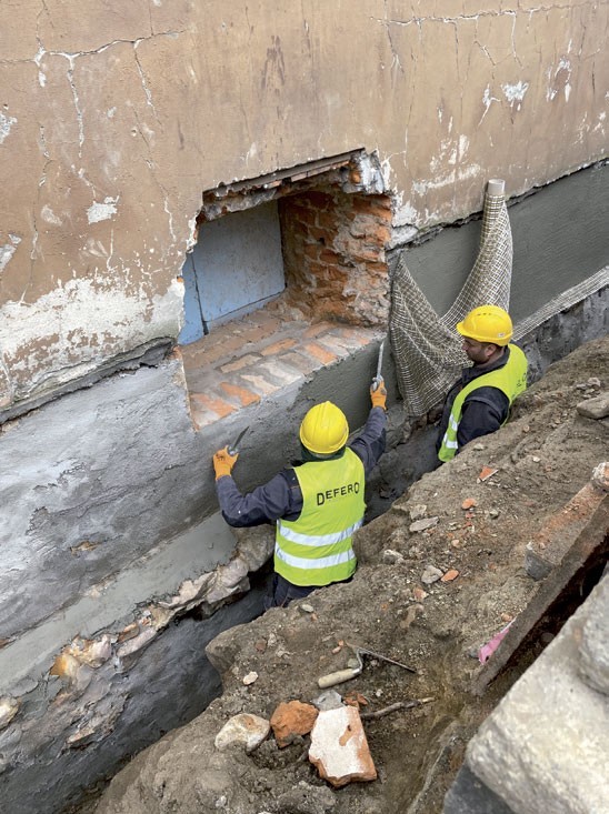 Istotnym elementem renowacji było wzmocnienie konstrukcji pałacu. Ściany zostały wzmocnione od wewnątrz za pomocą systemu FRCM marki Ruregold (ang. Fibre Reinforced Cementitious Matrix) składającego się z siatki z włókien kompozytowych PBO (charakteryzujących się wysoką wytrzymałością na zerwanie) oraz matrycy nieorganicznej, służącej jako łącznik siatki z konstrukcją. Zastosowano tutaj siatki dwukierunkowe PBO-MESH 10/10 oraz PBO-MESH 70/18 osadzone w systemowej zaprawie mineralnej. System Ruregold posłużył również do wzmocnienia innych elementów konstrukcji. Od zewnątrz wykonano wzmocnienie obwodowe budynku w poziomie stropów i narożników. W wytypowanych miejscach wzmocnienie było dodatkowo kotwione do ścian za pomocą konektorów z włókna kompozytowego PBO–JOINT. Sznury z włókien PBO zastosowano też jako zabezpieczenie przebiegu rys i pęknięć poprzez wklejanie tego produktu w spoiny.