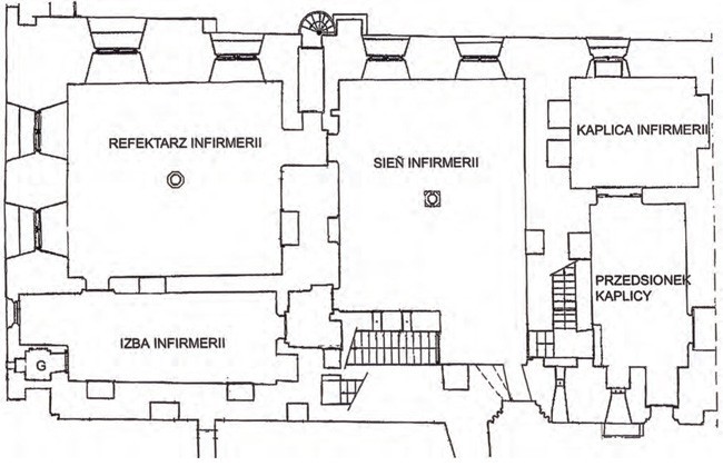 Od momentu powstania Zamek w Malborku był ciągle modernizowany i przebudowywany. W połowie XIV wieku w zachodniej części skrzydła północnego Zamku Średniego urządzono Infirmerię – szpital dla starszych i chorych braci zakonnych.