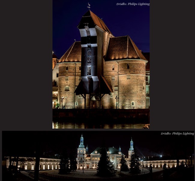 Zupełnie nowe możliwości iluminacji zabytków przynosi technika oświetlenia LED. Diody świecące LED zapewniają d zisiaj jasne, białe światło, o doskonałym oddawaniu barw w ciepłym, neutralnym lub dziennym odcieniu, które może być wykorzystane do subtelnego zróżnicowania poszczególnych detali architektonicznych budynku. Dzięki możliwościom cyfrowego sterowania za pomocą aplikacji komputerowych możemy również dobrać temperaturę barwową światła, która najbardziej pasuje do oświetlanego obiektu.