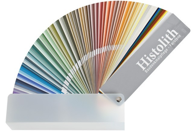 Odcienie uzyskiwane z tradycyjnych pigmentów sprawiają wrażenie naturalności i emanują historyczną autentycznością. Przykładem może być wzornik kolorów Histolith, w którym zawarto 355 kolorów, dobranych tak, aby wiernie odwzorować kolorystykę każdej z epok. Specjalnie wyselekcjonowane kolory, ujęte we wzorniku Histolith, mają historyczny rodowód. Barwy tam zawarte zostały pozyskane podczas prac renowacyjnych obiektów zabytkowych. W ten sposób udało się otrzymać wierne odwzorowania autentycznych barw historycznych. Do części kolorów zawartych we wzorniku Histolith przypisane są konkretne obiekty, na których dany odcień farby mineralnej znalazł zastosowanie. Informacja o obiekcie znajduje się na odwrocie karty wzornika. Wzornik kolorów jest na bieżąco aktualizowany oraz powiększany. Jest to odpowiedź na potrzeby klientów i nowych realizacji, które mają odzwierciedlenie w nowych kolorach. Na szczególną uwagę zasługuje szeroka kolekcja odcieni bieli. Kolory te są niezbędne podczas renowacji starszych obiektów (gotyckich czy barokowych). Każdy wzornik kolorów Histolith zawiera kompleksowe informacje, dotyczące konkretnego koloru. Na odwrocie każdej karty znajdują się informacje, dotyczące m.in. jasności koloru oraz dostępności koloru według wybranych rodzajów farb.