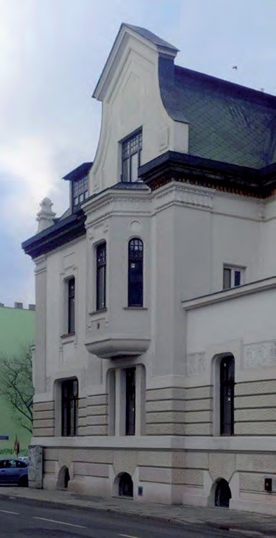Od 2014 do dzisiaj prowadzone są prace przy wilii Jakuba Kestenberga, usytuowanej na działce przy fabryce wyrobów wełnianych z 1900, na zbiegu ulic Jaracza i Sterlinga w Łodzi. Zaprojektowana przez Franciszka Chełmońskiego w roku 1902, wybudowana w ciągu zaledwie jednego roku. Data 1903 jest widoczna w oryginalnym progu wejścia od ul. Sterlinga, wykonanym z lastryka. Taka forma datowania obiektów jest bardzo charakterystyczna dla okresu secesji. Opisywana willa to dwukondygnacyjny budynek, zachowany w niezłym stanie. Wnętrza odpowiadają pierwotnym funkcjom. Na parterze znajdowały się pomieszczenia handlowe i administracyjne, na piętrze mieszkalne. Rezydencja, nakryta dachem mansardowym, znacznie rozbudowanym w połowie lat 50. na potrzeby biur Zakładów Odzieżowych Emfor. W późniejszym czasie, w latach 80. i 90., prowadzono remonty, i wtedy prawdopodobnie pokryto cementowym narzutem całość elewacji, który uszczelnił, a tym samym pogorszył stan techniczny. Cementowe narzuty występują na wielu elewacjach w całej Polsce; stosowano je powszechnie podczas remontów elewacji od lat powojennych, aż do lat 90. XX w. Była to forma scalania powierzchni oryginalnych tynków z późniejszymi uzupełnieniami. Jednak szczelny, mocny cement na często zawilgoconych i osłabionych murach zwiększał zakres zniszczeń. Pokrycie narzutem cementowym elementów detalu architektonicznego spłycało rysunek i zmniejszało jego czytelność. Przy bogato dekorowanych elewacjach z końca XIX i początku XX w., dopiero po oczyszczeniu i wyostrzeniu rysunku widać wysoki kunszt rzemieślników. Widać to już teraz, po zdemontowaniu rusztowań na elewacji opisywanego obiektu.