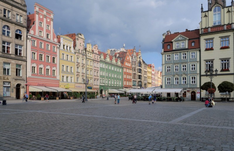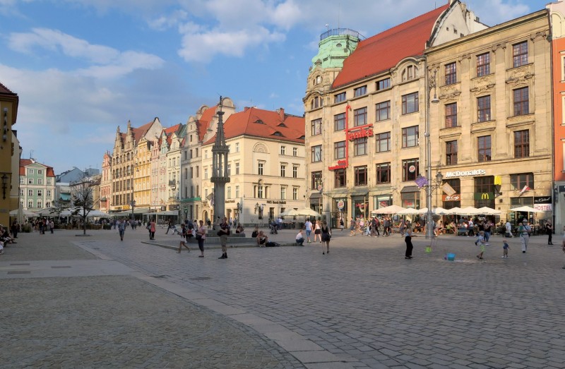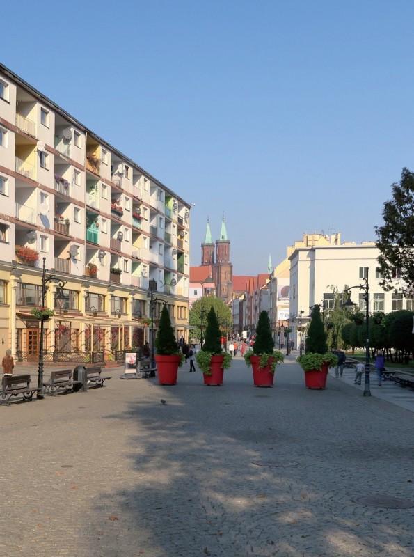 oraz emocjonalne znaczenie obydwu miast. Tym samym odbudowa realizowana była siłami całego państwa, co paradoksalnie ułatwiał ówczesny system ekonomiczny opierający się na założeniach socjalistycznej gospodarki planowej. Co było jednak możliwe w Warszawie i w Gdańsku, nie wchodziło w rachubę gdzie indziej. Inne wielkie miasta poważnie zniszczone w czasie wojny, jak Poznań, Wrocław i Szczecin, odbudowę musiały prowadzić głównie własnymi siłami, jej efekty i kształt mają tym samym odmienny, indywidualny charakter. W miastach tych podporządkowanej konserwatorskim założeniom odbudowie poddano tylko wybrane fragmenty, obejmujące głównie zabudowę przyrynkową oraz obiekty monumentalne. Pozostałe zniszczone obszary systematyczne wypełniano nową zabudową, co najwyżej skalą i ogólnymi gabarytami nawiązującą do budynków historycznych. W przypadku Poznania, w latach 50., pod wpływem doświadczeń warszawskich, zdecydowano o przywróceniu renesansowo- -barokowego charakteru Starego Rynku znanego z unikatowego w skali światowej renesansowego ratusza. W myśl „czystości stylowej” przy odbudowie usuwano wszelkie nieodpowiadające przyjętej koncepcji nawarstwienia, dążąc do odtworzenia wyglądu budynków z czasów przedrozbiorowych. W ten sposób zniszczonych zostało wiele autentycznych obiektów lub detali z XIX i początku XX wieku. W efekcie odrestaurowane budynki uzyskiwały wyidealizowany kształt, łączący zachowane lub odkryte w trakcie prac autentyczne elementy z historyzującymi uzupełnieniami. Wizja taka objęła także uszkodzone w czasie działań wojennych zabytki sakralne, czego najlepszym przykładem jest poznańska katedra, którą poddano idealistycznej regotyzacji, usuwając dobrze zachowane nowożytne nawarstwienia, w tym monumentalny barokowy ołtarz główny. W późniejszych latach z koncepcji tej zrezygnowano, preferując, w myśl założeń Karty weneckiej, współczesne realizacje o modernistycznej formie, jak ma to miejsce we wzniesionym w miejscu dawnych sukiennic, w bezpośrednim sąsiedztwie renesansowego ratusza, budynku Wielkopolskiego Muzeum Wojskowego. W podobnym duchu przebiegała odbudowa Wrocławia, tu jednak czynnikiem spowalniającym była wymiana ludności i związany z tym proces ponownego zasiedlania miasta należącego przed wojną do największych w tej części Europy. W przypadku dwóch wielkich placów wrocławskiego Starego Miasta, których odbudowę prowadzono w latach 50., tj. Rynku Głównego i placu Solnego, zastosowano analogiczne rozwiązania jak w Poznaniu, nawiązując przy odbudowie zniszczonych kamienic do ich wyglądu z końca XVIII w. w oparciu o dostępne źródła ikonograficzne. Z kolei w realizowanej w latach 60. odbudowie placu Nowy Targ wprowadzono całkowicie odbiegającą od dotychczasowej tradycji zabudowę modernistyczną. Do najbardziej spektakularnych i udanych przedsięwzięć konserwatorskich powojennego Wrocławia należy z pewnością realizowana z wielkim pietyzmem i dbałością o szczegóły odbudowa mocno zniszczonej zabudowy Ostrowa Tumskiego z monumentalnymi gotyckimi świątyniami, w tym zbombardowaną w czasie artyleryjskiego ostrzału miasta archikatedrą pw. św. Jana Chrzciciela.
