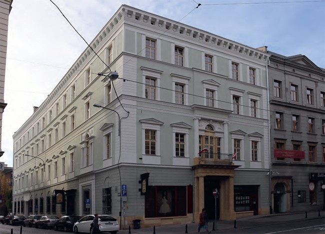 W 2014 roku przeprowadzono remont elewacji zabytkowej kamienicy, zlokalizowanej we Wrocławiu, na rogu ulic Wita Stwosza oraz Biskupiej. Renowacji poddano elewację północną oraz wschodnią, które formą nawiązują do pałacu miejskiego.
