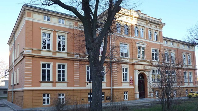 Budynek przy ul. Ofiar Katynia 25, wzniesiony w latach 80. XIX w., był siedzibą różnych instytucji. Pierwotnie mieścił szpital miejski, przed II wojną funkcjonowała w nim szkoła garbarska, po wyzwoleniu szpital powiatowy, a od roku 1967 stał się siedzibą Liceum Medycznego. Obecnie mieści się w nim Zespół Szkół. W roku 1991 obiekt został wpisany do rejestru zabytków województwa opolskiego.