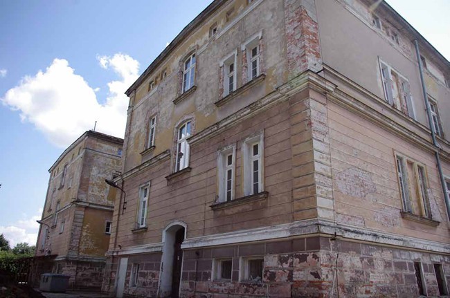 Zakres prac obejmował remont elewacji, pokrycia dachowego oraz wykonanie zabezpieczeń przeciwwilgociowych przyziemia. Skuto niemal 90% starych tynków. Prace rozpoczęto od wzmocnienia murów, puste fugi pomiędzy cegłami zostały wypełnione Wapienno-cementową zaprawą K 01. Następnie, po starannym oczyszczeniu powierzchni murów ceglanych, wykonano warstwę sczepną z Zaprawy MZ 4. Zadaniem zaprawy MZ 4 było zwiększenie przyczepności pomiędzy nowymi tynkami a starym podłożem. Następnie ściany otynkowano Tynkiem wapienno-cementowym MK 3h. Tynk MK 3h posiada uziarnienie 0-1,2 mm, zawiera dodatki hydrofobizujące, nakładany był w dwóch warstwach i zacierany na ostro. W wybranych polach w tynku MK 3 wykonano boniowanie metodą żłobienia w świeżej warstwie zaprawy tynkarskiej.