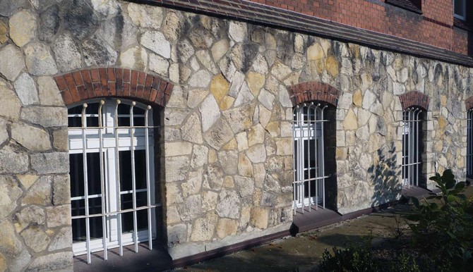 Wiosną 2011 r. rozpoczęto renowację kamienno- ceglanych ścian przyziemia w jednym z zabytkowych budynków na Dolnym Śląsku. Obiekt został wybudowany w pierwszych latach XX w. Ławy fundamentowe wymurowano z cegły pełnej. Ściany przyziemia to masywny mur kamienno-ceglany. Od strony wewnętrznej mur został wykonany z cegły pełnej na grubość ok. 38 cm, natomiast lico muru od strony zewnętrznej obłożono blokami z piaskowca o grubości ok. 20 cm. W chwili rozpoczęcia prac remontowych wiele do życzenia pozostawiała estetyka muru licowanego piaskowcem. Widoczne były czarne nawarstwienia na powierzchni kamienia (fot. 1) oraz ślady po nieudolnych próbach uzupełniania ubytków w kamieniu. Zauważyć można było, niezgodne z zasadami konserwacji, wypełnienia fug za pomocą mocnej zaprawy cementowej (fot. 2). Dodatkowo powierzchnie ścian od strony wewnętrznej były silnie zawilgocone, złuszczeniu uległy powłoki malarskie, tynki wapienno-cementowe osypywały się na skutek niszczenia przez krystalizujące sole (fot. 3).