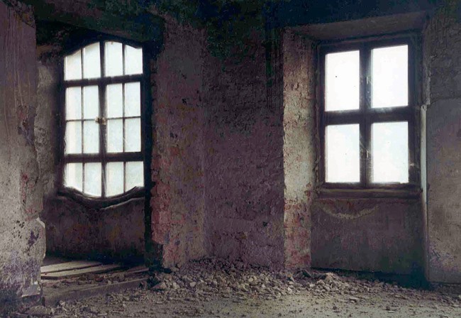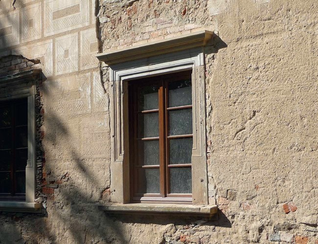 Wnęka okienna od wewnątrz, widoczne obramowanie z piaskowca – mostki termiczne.